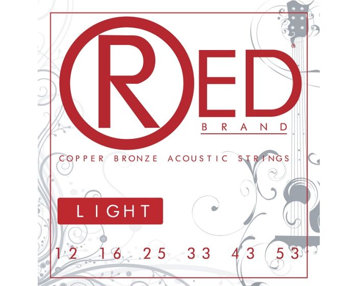 Copper Bronze 12 gauge Light - Acoustic warmth is the pinnacle of your acoustic guitar voice. Without it, your guitar will sound tinny and soulless. 80/20 bronze has 80% copper. Phosphor bronze strings contain 90% copper and because of this, has a warmer, more pleasing sound. At RED Brand Strings, we asked the question, what would 99% copper sound like. The result is RED Brand Strings, the first and only brand of copper-bronze acoustic guitar strings. With the highest copper content of any string brand, RED Brand gives acoustic guitars precise articulation, louder sound, greater projection and a warmer, richer tone from the moment you tune them up. There hasn't been a significant new material introduced for acoustic guitar in 35 years.