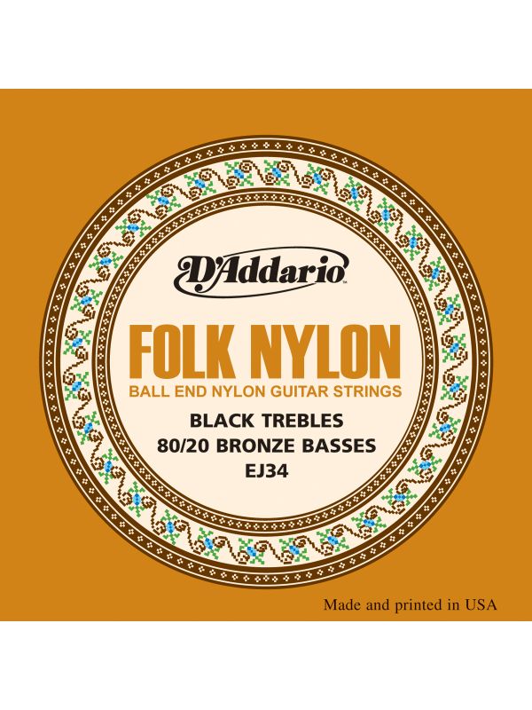 EJ34 Folk Nylon, Ball End, 80/20 Bronze/Black Nylon Trebles