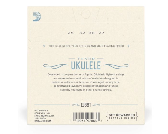 EJ88T ukulele string sets are designed for use with tenor ukuleles utilizing our exclusive Nyltech material. This set is optimized for standard GCEA tuning.