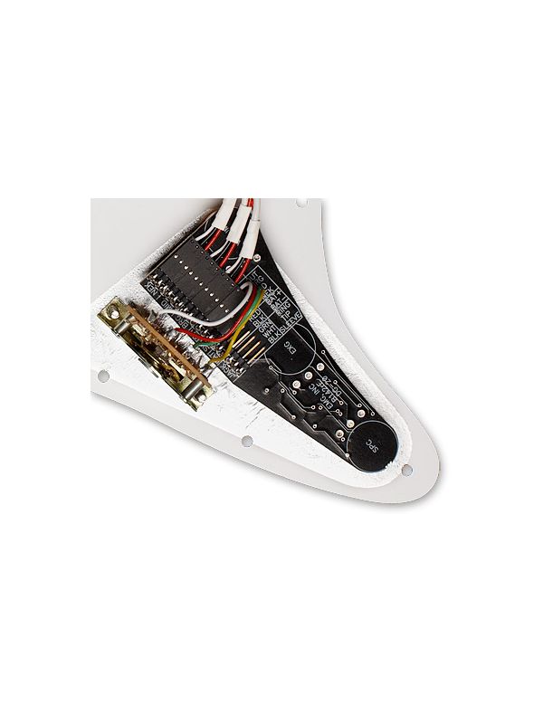 which he has used to great effect both with Pink Floyd and as a solo artist. When you hear the tones coming out of his red Strat® you are hearing him play his signature EMG Pro Series system, the DG20. This set utilizes our ivory alnico loaded SA single coils, an EXG guitar expander for tonal girth and an SPC presence control to enhance the Strat earthiness, all prewired onto a custom 11-hole white pearl pickguard with white knobs. Drop it in and drop out of this plane of reality, you’re going for a ride.