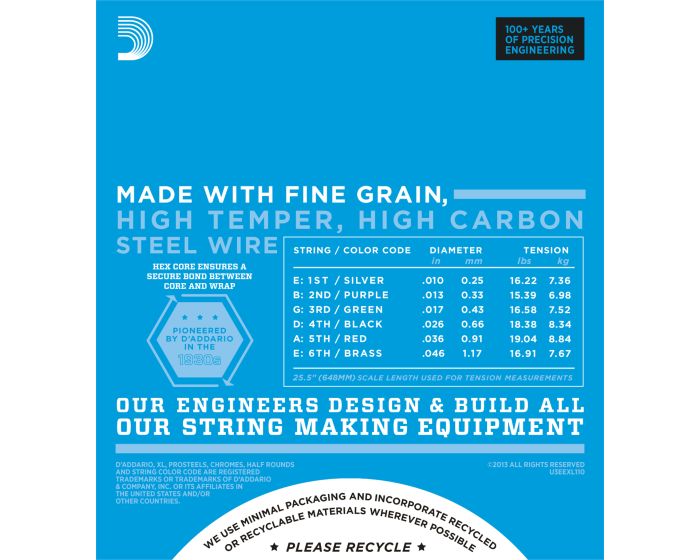 Round wound with nickelplated steel for distinctive bright tone - Environmentally friendly, corrosion resistant packaging for strings that are always fresh.