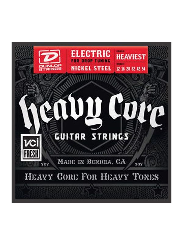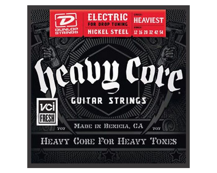 Dunlop Heavy Core Electric Guitar Strings are specially designed for the player that plays in dropped or lowered tunings. Heavy Core strings incorporate a unique core wire and proprietary wrap ratios to offer players the ability to really "dig in" while retaining a tight low end, focused midrange and smooth top-end when playing clean or distorted.