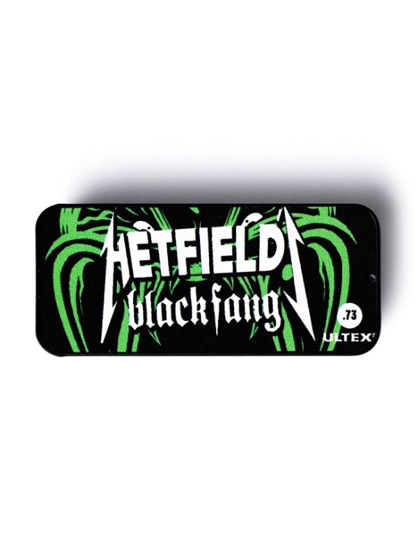 From ass-kicking Metallica epics like Motor Breath to new thrashers like Cyanide, riff master James Hetfield's venomous style has inspired many. Preferring picks with a bright tone and biting attack, Hetfield looked to Dunlop for the perfect tool for his fierce downward picking style. Based on a vintage tortoise-shell pick, the Black Fang is made of tough, sturdy Ultex material with a defined tone and sharp attack. Its pointed and contoured tip gives you ultimate speed and control-perfect for players looking to unleash their tone clearer, faster, and with unrivaled precision. It's fast, bright, and strong because of its hard point and material, says the man himself. It gives you everything you need-just add venom.