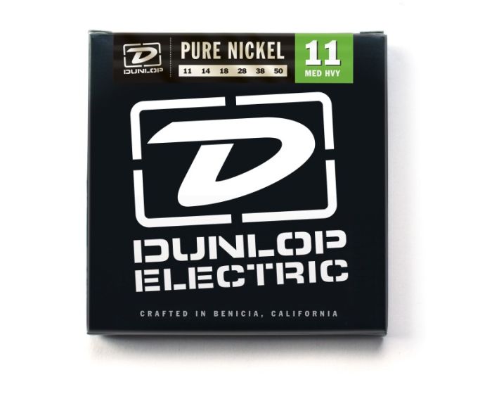 Dunlop electric guitar strings are made with great pride in Benicia, California and offer a unique recipe of smooth highs, focused mids and defined lows.