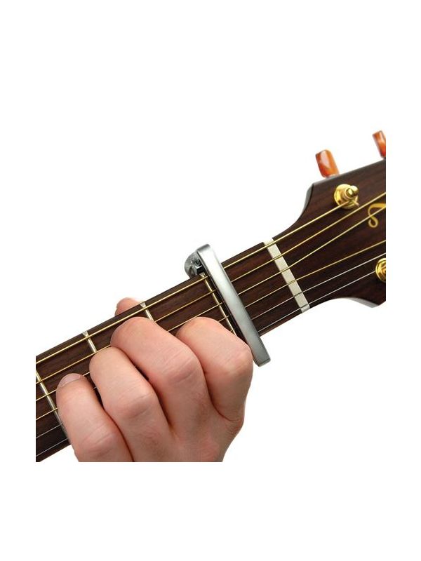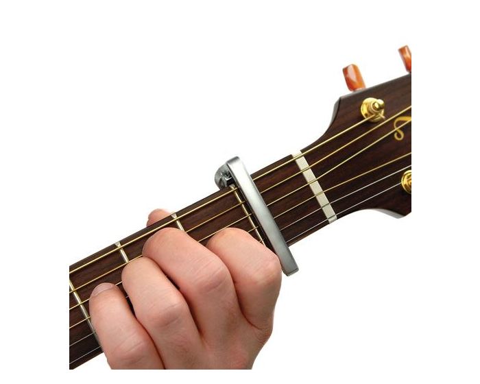 Designed for acoustic and electric guitars with radiused fretboards, Micrometer tension adjustment assures buzz-free in-tune performance at every fret, Single hand operation, Aircraft grade aluminum construction, Works for 6 or 12 string acoustic and electric guitars; also available in a classical guitar version