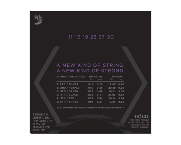 D’Addario NYXL guitar strings will bend farther, sing louder, and stay in tune better than any string you’ve played before. Envisioned, perfected, and manufactured by D’Addario in New York, this newly engineered, break-resistant, high-carbon steel core and plain steel alloy delivers a whole new level of freedom, confidence, and power. NYXL’s provide more strength and up to 131% greater tuning stability by utilizing a completely reinvented wire drawing process coupled with a revolutionary “fusion twist” process for the plain steels. The reformulated nickel plated string windings have greater magnetic properties resulting in higher output and enhanced mid-range frequency response for more presence and crunch.