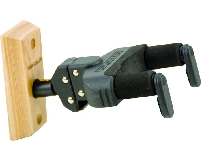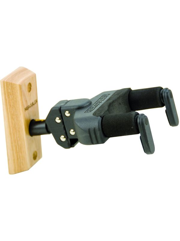 The HERCULES Auto-Swivel Yoke Hanger safely accommodates different shaped guitars or basses by automatically rotating. It features an attractive wood base for home or studio use.