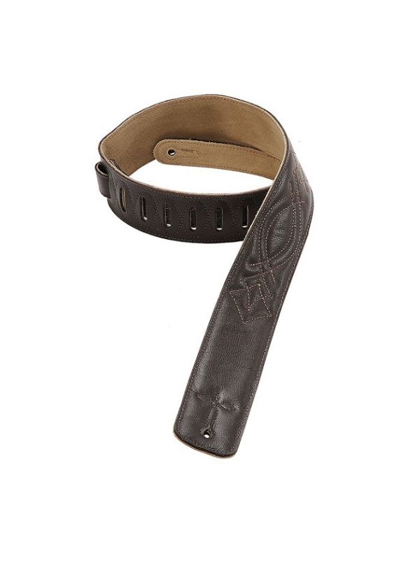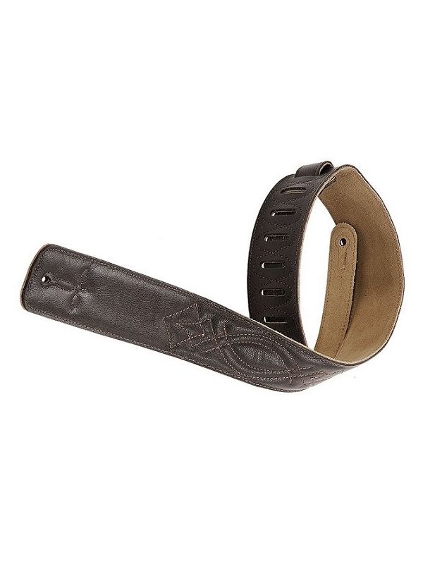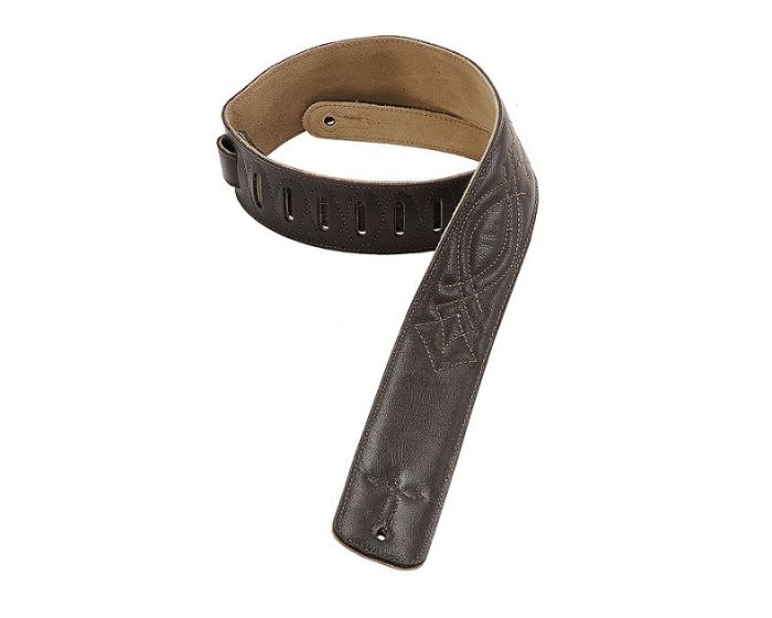 The foam padding and seude backing make this 2-1/2" DARK BROWN garment leather strap with decorative stitching a must for any bass or guitar player.