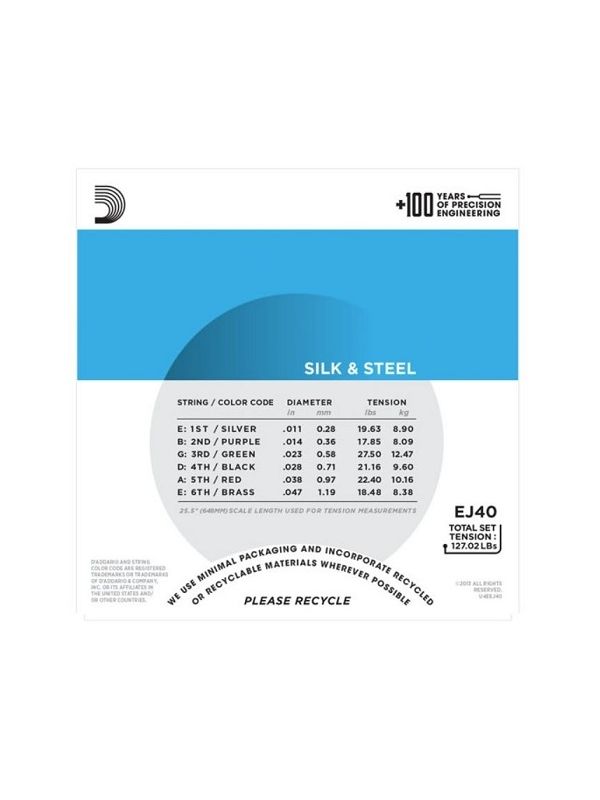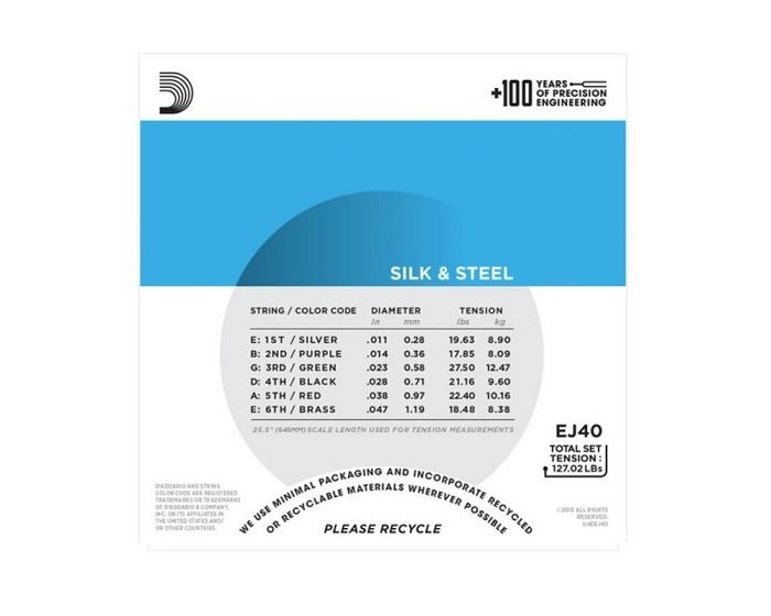 EJ40 Silk & Steel strings are designed and gauged specifically for guitarists who use traditional fingerstyle methods and prefer a warm, mellow tone.