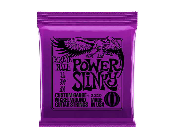 Ernie Ball Power Slinky Electric Strings are a perfect match for those who like chunky rhythms for rock and roll or blues Power Slinkys have long been favored by Slash, Metallica, and Kenny Wayne Shepherd due to the thicker gauge combination providing a slightly more powerful tone These strings are precision manufactured to the highest standards and most exacting specifications to ensure consistency, optimum performance, and long life Power Slinky wound strings are made from nickel plated steel wire wrapped around a hex shaped steel core wire The plain strings are made of specially tempered tin plated high carbon steel producing a well-balanced tone for your guitar