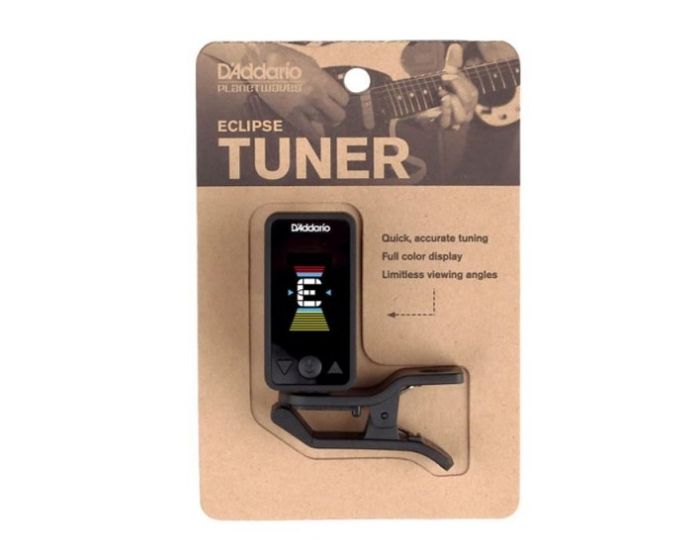 The D’Addario Eclipse Tuner—the humbly-priced headstock tuner with exceptional performance. The Eclipse chromatic clip-on tuner offers fast, accurate chromatic tuning on and off the stage. The tuner features a full color vertical display, auto power-off, and pitch calibration in a discreet, compact design. The multi-swivel action allows for the perfect viewing angle and can be mounted in front of or behind the headstock on right- and left-handed instruments.