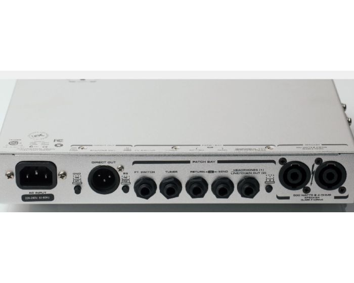Connectivity - Balanced DI with Pre/Post and Ground Lift switches to feed the house, Foot Switch Jack, Tuner output, FX Loop for connecting outboard accessories, Headphone Output for silent practice, Line Out plus “Chain Out” to drive GK’s MBP powered cabinets. Two twist lock speaker connectors ensure reliable and safe cabinet connections
