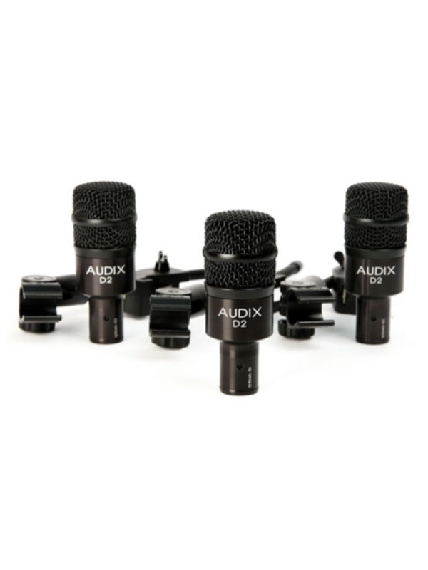 The Audix D2 Trio is everything you need for miking your toms, all in one convenient package. The tailored frequency response of the D2 drum microphone gives you all the punch, clarity, and warmth needed for percussion without being muddy or boomy. The proprietary VLMTM (Very Low Mass) capsule technology provides superior transient response and more accurately captures every detail of your music. The included DVICE mounts let you squeeze these microphones into tight places eliminating the need for bulky microphone stands.