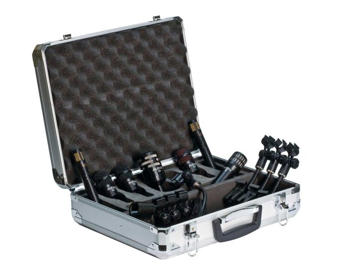 Included in the DP7 drum microphone package is the D6, Audix's flagship kick drum microphone, two – D2 dynamic drum microphones for rack toms, one D4 for floor tom, the i5 for snare and a pair of ADX51 studio condenser microphones for overhead miking. Also included are four D-Vice rim mount clips for the snare and tom microphones, and three heavy duty tension fit microphone clips for the other three microphones. Everything is conveniently packaged in a foam-lined aluminum road case for safe keeping when the microphones are not in use.
