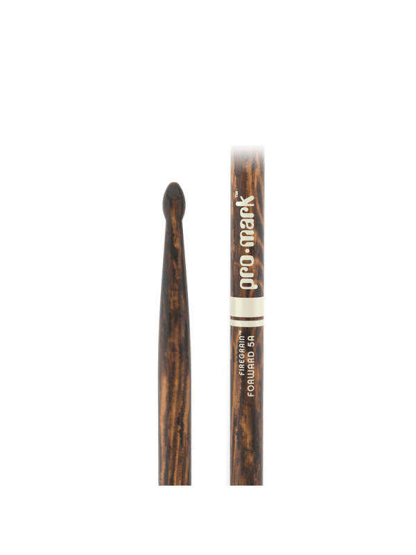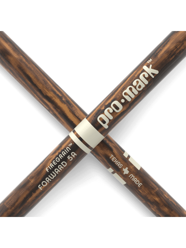 | Review | Promark FORWARD 5A Lacquered FireGrain TX5AW-FG ProMark's most durable Forward 5A. FireGrain is a patented heat-tempering process that transforms ordinary hickory drumsticks into precision tools with unprecedented durability. While keeping their original weight and balance, ProMark FireGrain sticks allow drummers to hit harder and play longer, naturally. No excess vibration, no space age gimmicks, just natural hickory hardened by flame. For a limited time, packaging and stick artwork may vary. PRODUCT FEATURES