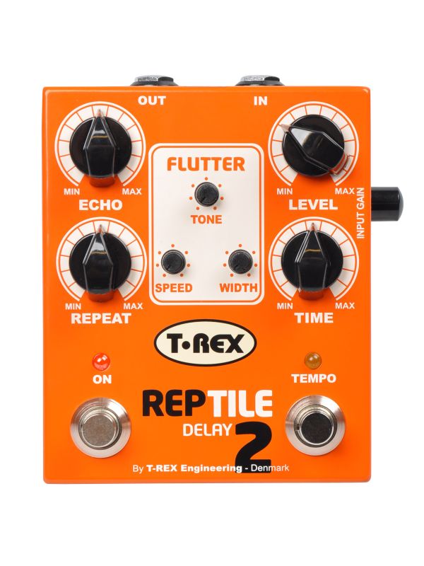 Flutter Section - Besides Tap Tempo, Reptile 2 also features an enhanced Flutter section, with a new Tone control. Flutter introduces a touch of random-sounding “warble” to your delay for that great retro tape-effect sound. The Tone control lets you take the top end off your delayed repeats for an even more authentic vintage tone.