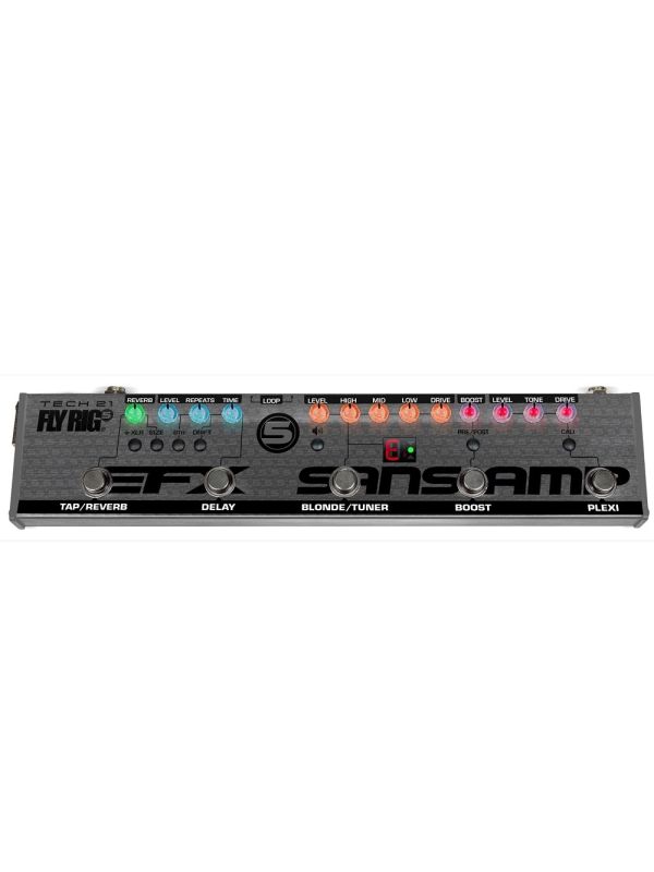 The original Fly Rig, introduced in 2014, was a true game-changer for players in all categories, from touring pros to bedroom hobbyists. At a time when pedalboards were expanding and backs were breaking, the innovative Fly Rig enabled players to slim down without sacrificing great tone, and travel without fear of baggage surcharges and dreaded mystery backlines. Going beyond being just a multi-effects unit, the all-analog SansAmp technology enables any Tech 21 Fly Rig to be an actual “rig.” You can run directly into mixers of recording desks and PA systems, as well as augment your existing amplifier set-up. Always seeking to improve our offerings and listening to customer feedback, we’ve incorporated some new features to follow the same form factor as later Fly Rigs, such as the Bass, Acoustic, and Paul Landers Signature PL1. The Fly Rig 5 v2 retains the same SansAmp heart, Plexi/Cali distortion and Delay, but adds a few twists and turns within these sections. New features include an independent reverb with choice of room size, an effect loop, a tuner, and an XLR Output.