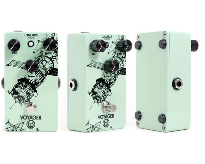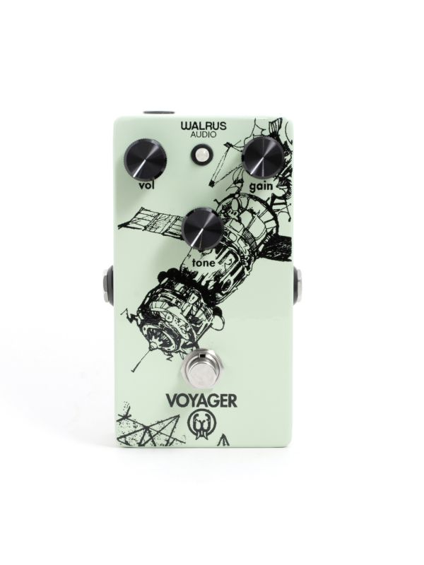 The Voyager is a gain/preamp overdrive that boasts a full spectrum of tone from any setting on its simple set of controls. From its lowest to highest settings, the Voyager provides a uniquely superb amount of clarity to any style of playing. At lower gain settings, it brightens the signal and adds clarity to each note played. With the gain turned up, the Voyager transforms into a thick overdrive, providing depth to chorded playing while retaining the clarity needed to break through on solos. Has True Bypass switching.
