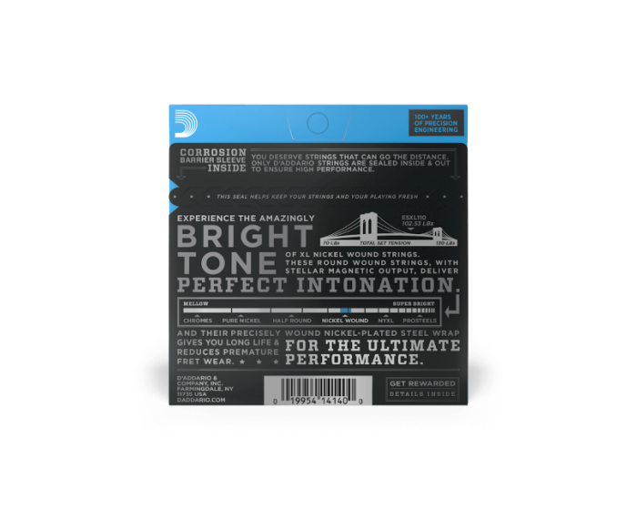 - Like all D’Addario electric guitar strings, XL Nickel are made with our proprietary Hex-Core, ensuring perfect intonation, consistent feel, and reliable durability.