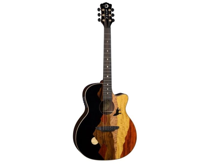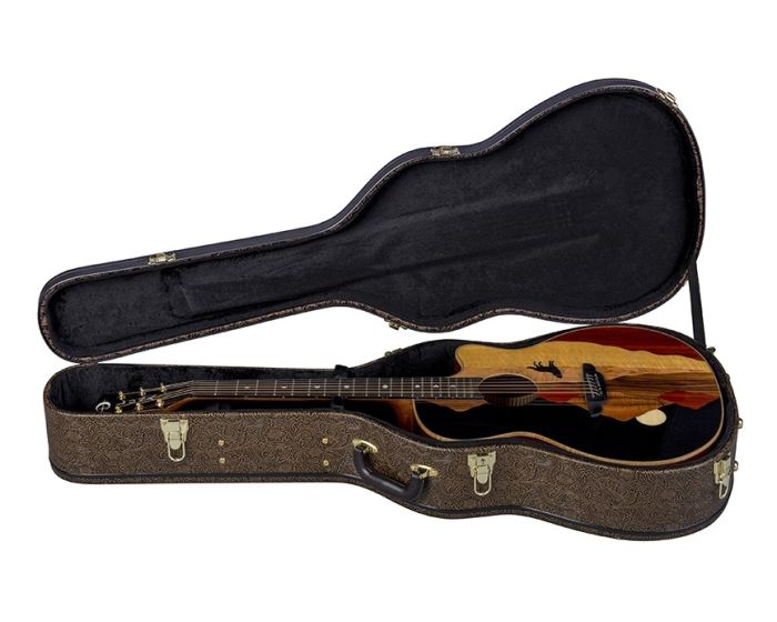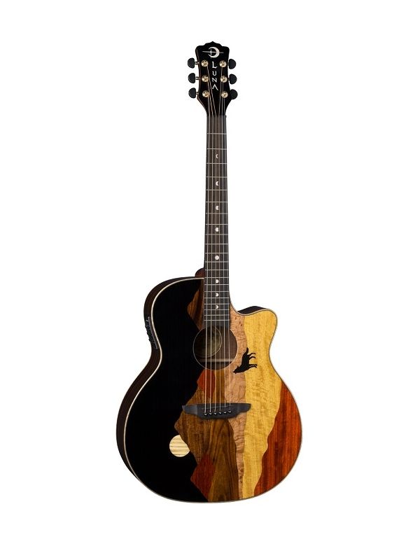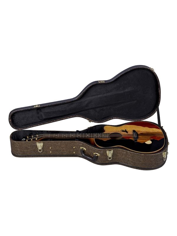 The Vista Series Wolf model showcases a skillfully crafted top, made from attractive tone-woods that bring its unique panoramic image to life. Handmade from a combination that includes Paduk, Bird's Eye Maple, Koa, and Flame Maple, each guitar is a completely unique work of art. Once plugged in, the Vista Wolf takes off in yet another sonic direction. Owing to a Fishman Presys+ (PSY-201) preamp/tuner, the Vista Wolf offers clear, strong, natural acoustic sound on stage even when going against dense instrumentation. Whether plugged-in or not, the Vista series incredibly full tone, pristine clarity, and unique visual presence make it the ideal instrument to make your musical statement. The Vista Series blurs the line between the world of fine art and the art of advanced acoustic guitar building.