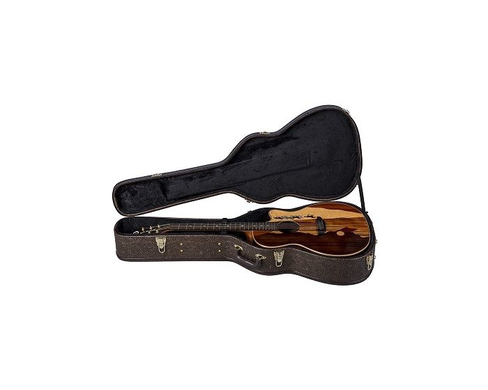 Touting superb craftsmanship and rich, warm sound, Luna acoustics have long been sought after for their remarkable aesthetics. The Vista series once again shows Luna blurring the line between the world of fine art and the art of advanced acoustic guitar building. The Vista Series Mustang model showcases a skillfully crafted top, made from attractive tone-woods that bring its unique panoramic image to life. Handmade from a combination that includes Rosewood, Zebrawood, Paduk, Bird's Eye Maple, Koa, and Flame Maple, each guitar is a completely unique work of art. The Vista Mustang features a gloss finished, flamed maple bound, Grand Concert body with choice Koa back and sides for enhanced tone and projection. Precision fitted with a hand-shaped 25 scale Mahogany neck and capped with a smooth, Pearl Moon Phase inlaid Ebony fretboardthe Vista Mustangs feel, playability, and stand-alone acoustic sound are nothing short of inspirational. Once plugged in, the Vista Mustang takes off in yet another sonic direction. Owing to a Fishman Presys+ (PSY-201) preamp/tuner, the Vista Mustang offers clear, strong, natural acoustic sound on stage even when going against dense instrumentation. Whether plugged-in or not, the Vista series incredibly full tone, pristine clarity, and unique visual presence make it the ideal instrument to make your musical statement.