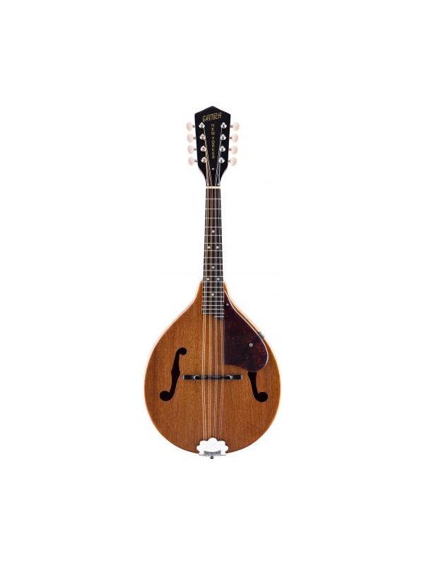 The G9310 New Yorker Supreme features all solid mahogany top, back, and sides; mahogany neck; rosewood fingerboard with pearl dot inlays, rosewood bridge; Grover® machine heads; vintage “clam-shell” tailpiece; nickel hardware; 13 7/8” scale; 1 1/16” nut; antique semi-gloss mahogany finish.