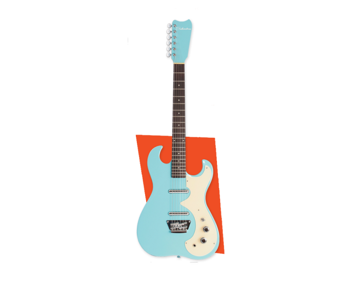 One of the most clever and well-known concepts in the early ’60s guitar boom was the Silvertone Amp-in-case line. For well under $100, you could get a guitar that came in a case featuring a 5-watt (later, 6-watt) tube amp built right in. Just open the case halfway, stand it up, switch it on, and wail. The original guitar in the 1962 kit (1448) was a single pickup, short-neck model. A year later, the 2-pickup 1449 was introduced and the Amp-in-case really took off. The 1449 is the most rare of the breed, being replaced by the almost identical redburst 1457 in 1964. This guitar screams.