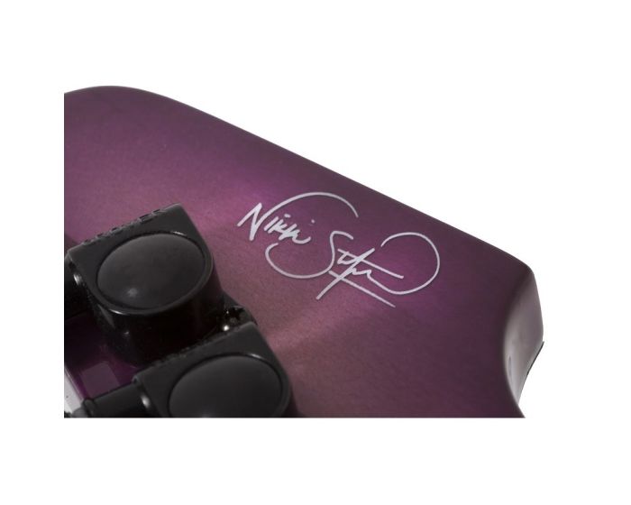 Here at LAWK STAR Guitars, we know GIRLS RAWK and know how to design a guitar. This signature Nikki Stringfield is absolutely stunning in the new Maiden Mist custom color. This guitar is complete with 24 X-Jumbo Frets, Abalone 'Vine of Life' and Mother of Pearl 'Hell's Gate Skull' inlays and Schecter USA NS-1 & Sustainiac® Pickups.