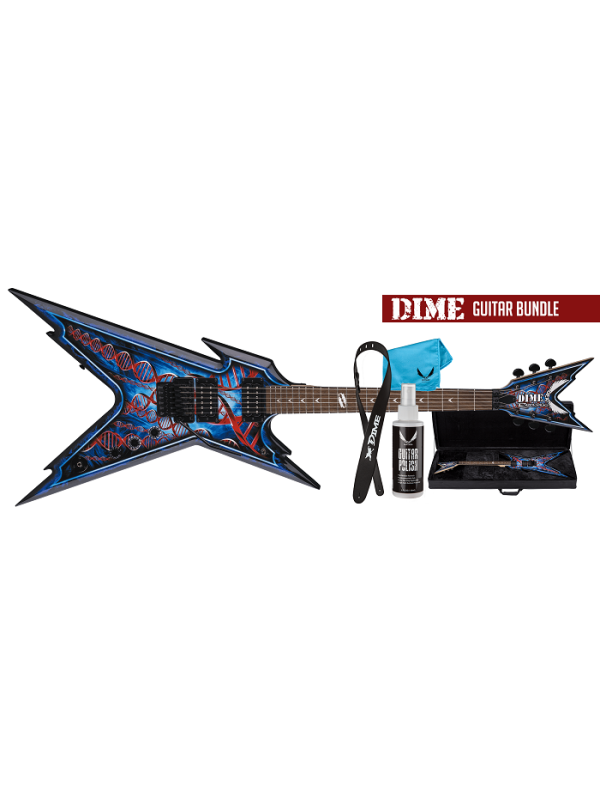 Known for having one of the greatest tones of all time! Dimebag Darrell legacy lives on with the Razorback DB Electrics from Dean Guitars. This Razorback DB Floyd DNA Spatter guitar was inspired by an actual drawing of Dime’s. Everything about this guitar boasts perfection, including the price. One the best Dime Guitars deals around. Free item included with this Guitar Bundlle: Guitar Strap, Polish Cloth, and polish not to metion you get a guitar case.
