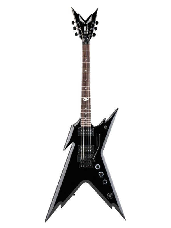 With an unforgettable lightning bolt shape, Dean’s Razorback Dimeback (DB) is a well-balanced solid body guitar with a Classic Black glossy finish on the basswood top and body. The eye-catching design includes a C-shaped, bolted-on maple neck with a rosewood fingerboard adorned with pearl Dime Razor inlays along 22 frets. At the 12th fret, you’ll find a razorblade-shaped pearl inlay that evokes the musician’s famous necklace. Black hardware and Dimebag traction knobs complete the look.