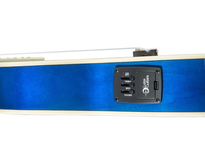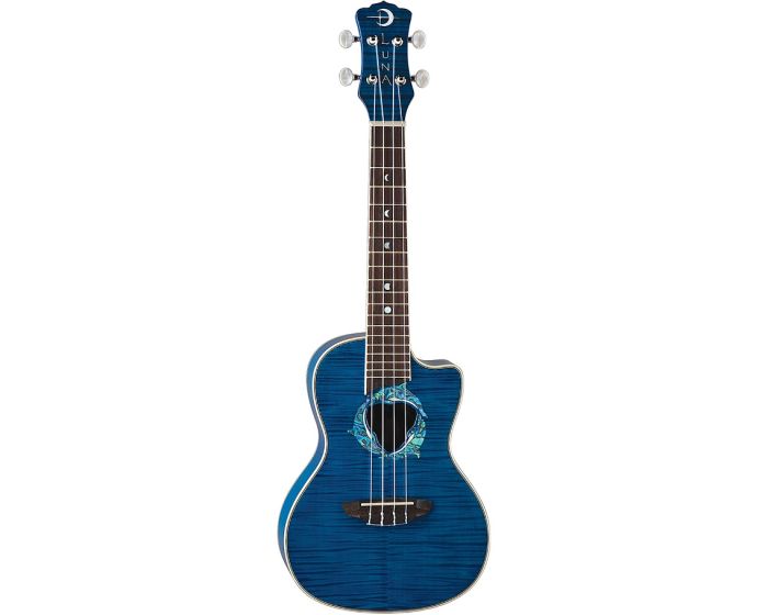 The Luna Uke Dolphin has a Flame Maple top, Maple body, Mahogany neck and Rosewood fingerboard. The onboard pre-amp offers the flexibility of either acoustic or amplified play. Maple binding and a high-gloss finish round out this impressive concert cutaway.