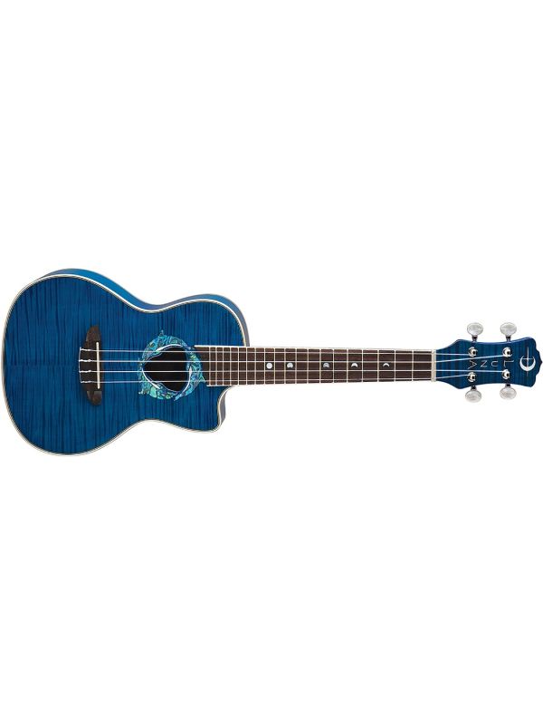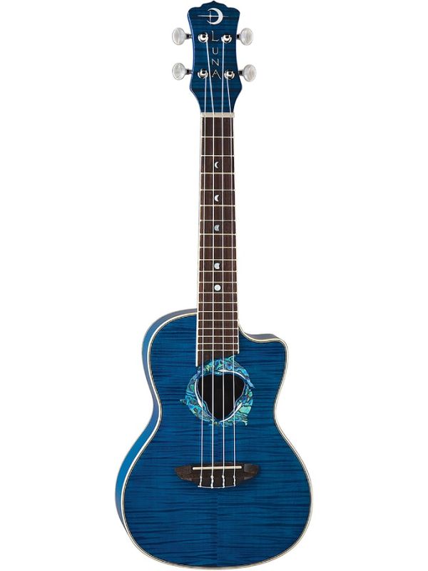 Luna Dolphin Concert Flame Top A/E Ukulele, Trans Blue
