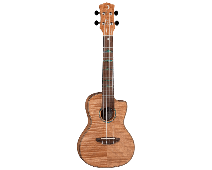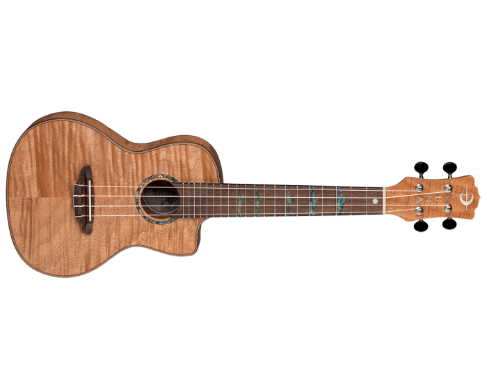 This beautiful Luna High Tide Concert ukulele features an exotic mahogany top and body, producing a full yet sharp vibrant sound one can expect from a high-end concert ukulele. Uke enthusiasts will become infatuated with the rich exotic top and stunning multiply maple and walnut binding which showcases its overall natural beauty.