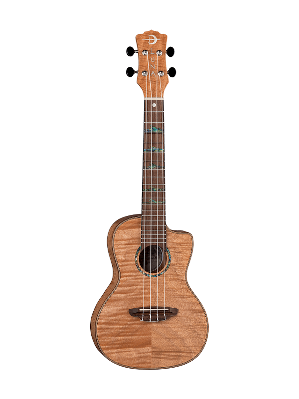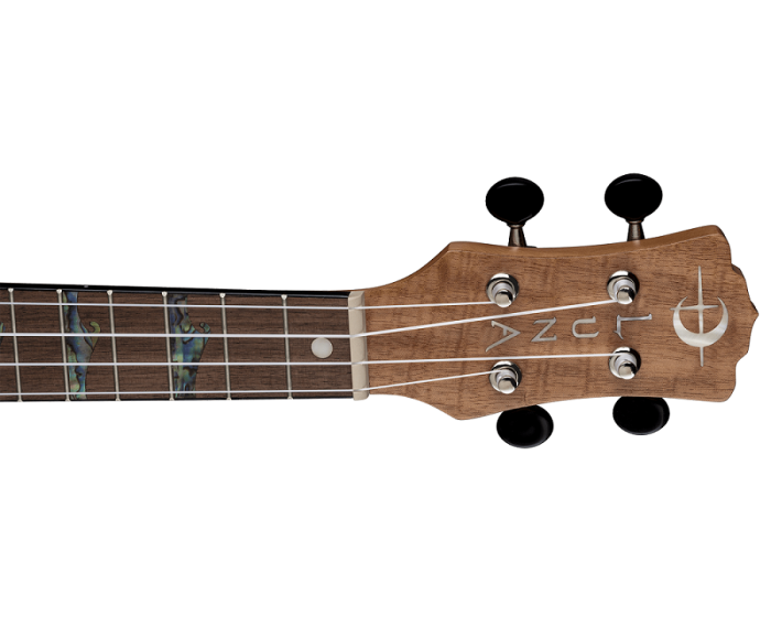 Luna's High Tide Series is a premier line of line of ukuleles crafted from exotic tropical hardwoods. The idea behind the series takes its inspiration from the full moon at the first fret which causes the abalone wave fret markers below it to "rise" as they make their way up the fretboard towards the moon's pull.