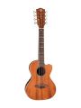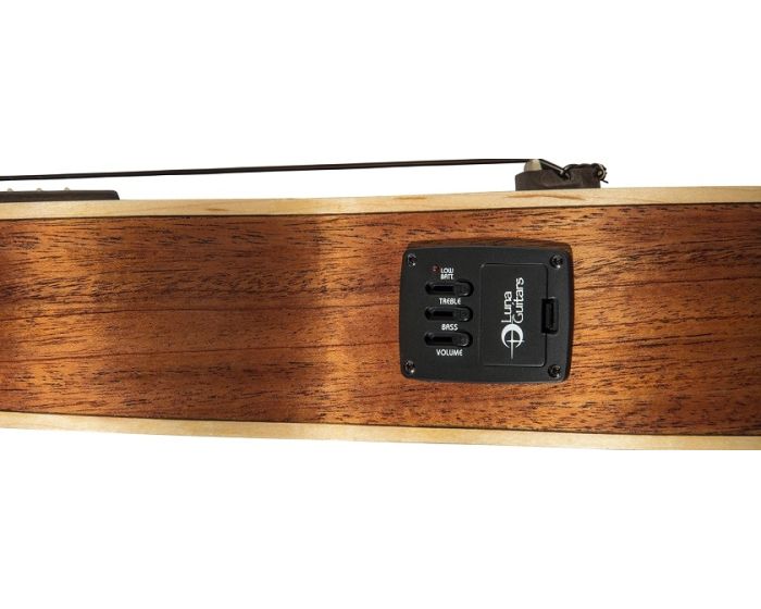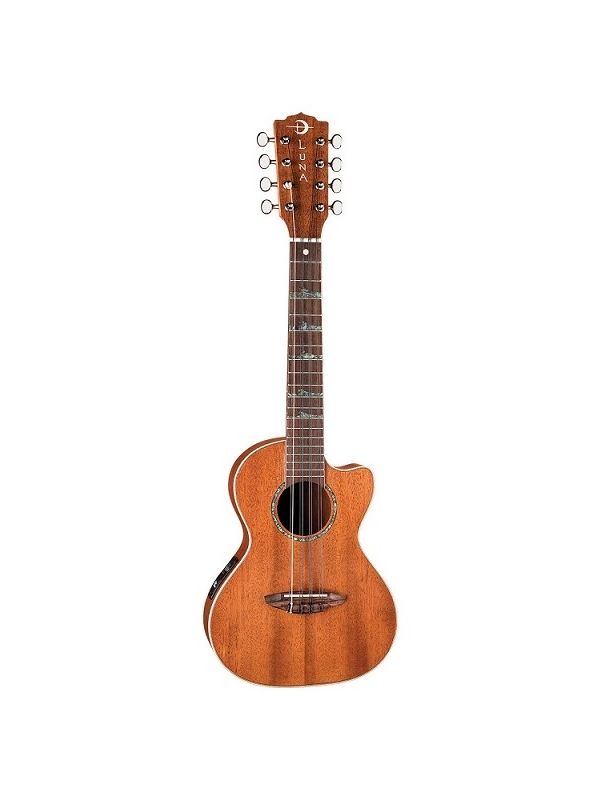 This beautiful Luna ukulele features a set neck and all Mahogany construction, resulting in full, deep sound along with the instrument's tenor body size. The cutaway offers comfort when accessing the upper-register frets, and the mahogany neck and rosewood bridge and fretboard add lasting sustain and clarity to your tone. The open-style tuners keep the instrument in precise tuning while the onboard preamp provides easy amplification that can be dialed in quickly. Dressed in a satin finish, this is a great addition for the accomplished player