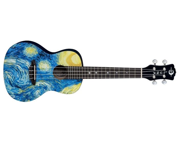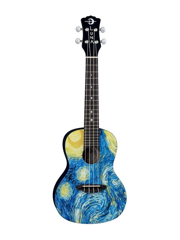 "This morning I saw the countryside from my window a long time before sunrise, with nothing but the morning star, which looked very big." These words were written by van Gogh, to his brother Theo, describing his inspiration for one of his best-known paintings. We were inspired too...and the result was our Starry Night Concert Ukulele! Beautifully handcrafted from select mahogany, this uke boasts quality construction to match its sound and stunning design. Whether looking for a ukulele for impromptu gigs, younger players or songwriting on the go, a Luna uke is perfect for a variety of players and needs. This concert uke boasts a clear, resonate sound both by virtue of its concert body and mahogany construction. Gig bag included.