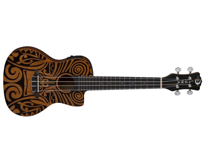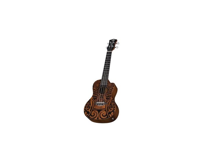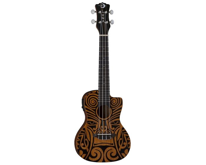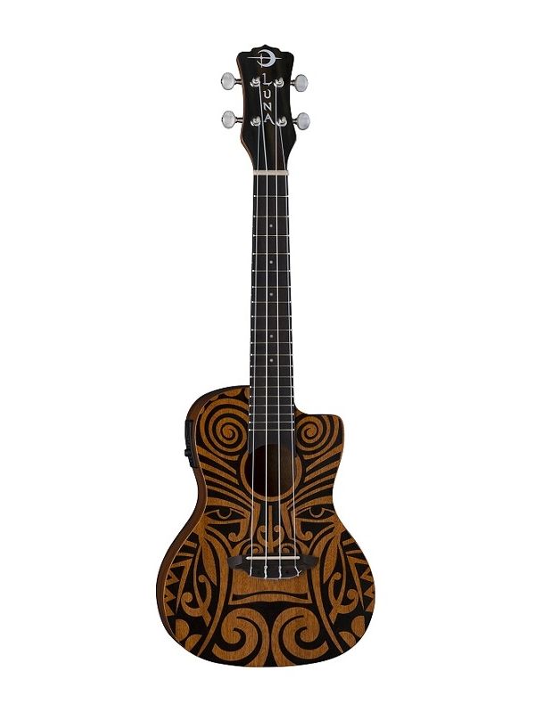 Luna's mahogany ukuleles combine the best of traditional profiles and wood selection with Hawaiian body ornamentation, entwined guardian spirits, and contemporary longings. This Tribal Concert Mahogany Uke takes its design from traditional Pacific carvings.