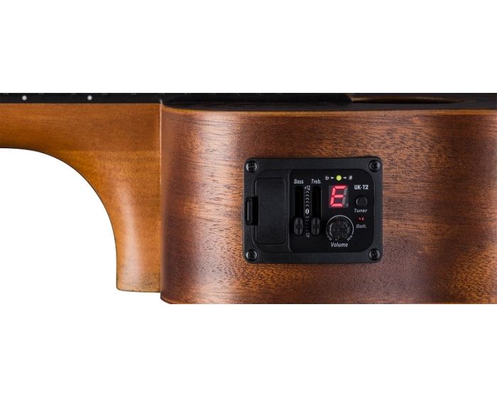 A great uke from beginners to pro's alike! This concert uke features a cutaway for comfort when accessing the upper-register frets. The open-style tuners keep the instrument in precise tuning and the onboard Luna UK-T2 preamp with onboard tuner provides easy amplification that can be dialed in quickly. Stunning design combined with quality construction at a great value make this a "best buy" for a variety of players and styles.