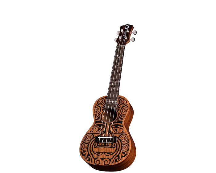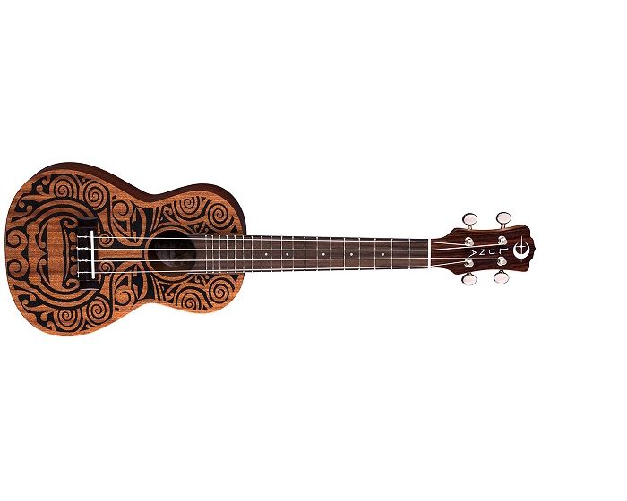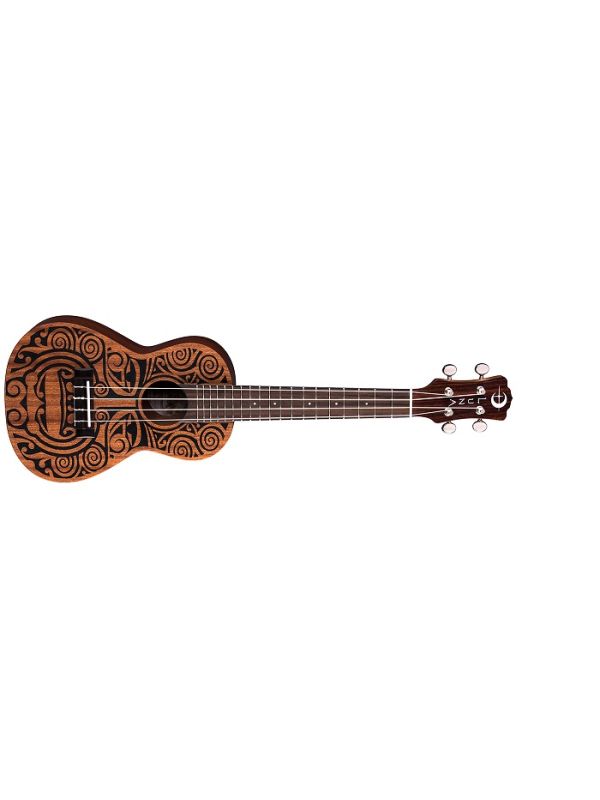 Luna's mahogany ukuleles combine the best of traditional profiles and wood selection with Hawaiian body ornamentation, entwined guardian spirits, and contemporary longings. This Tribal Concert Mahogany Uke takes its design from traditional Pacific carvings.
