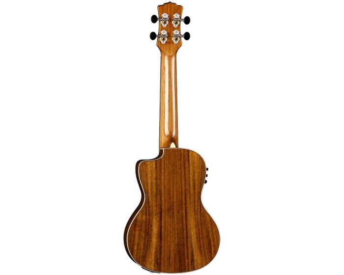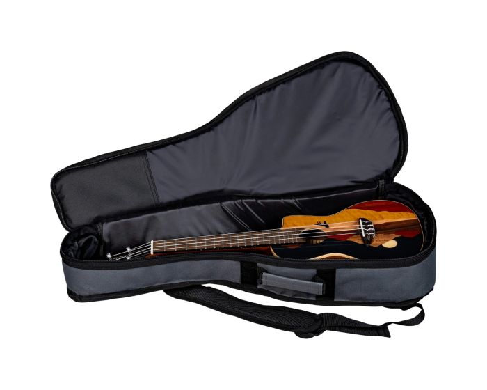 The Vista Wolf concert ukulele features a gloss finished, maple binding, concert body with a cutaway and Koa back and sides for enhanced tone and projection. Showcasing a skillfully crafted top, the Vista Wolf Concert is made from attractive tone-woods that bring its unique panoramic image to life. Handmade from a combination that includes padauk, bird's eye maple, Koa, and Flame Maple, each ukulele is a completely unique work of art. Precision fitted with a 15 scale mahogany neck with pearloid moon phase inlays on a black walnut fretboard the, Vista Wolf ukes feel, playability, and stand-alone acoustic sound are nothing short of inspirational. Once plugged in, the Vista Wolf takes off in yet another sonic direction. Owing to a Fishman Kula with built-in tuner, youll hear clear, strong, natural acoustic sound on stage. Whether plugged-in or not, the incredible tone from the Vista Series offers pristine clarity and unique visual presence make it the ideal instrument to make your musical statement. Padded gigbag included.