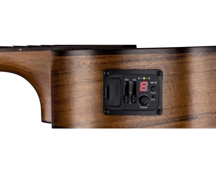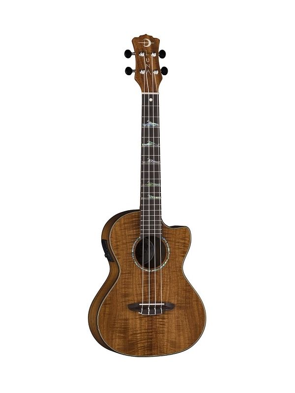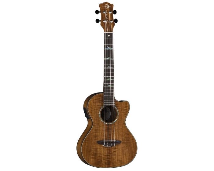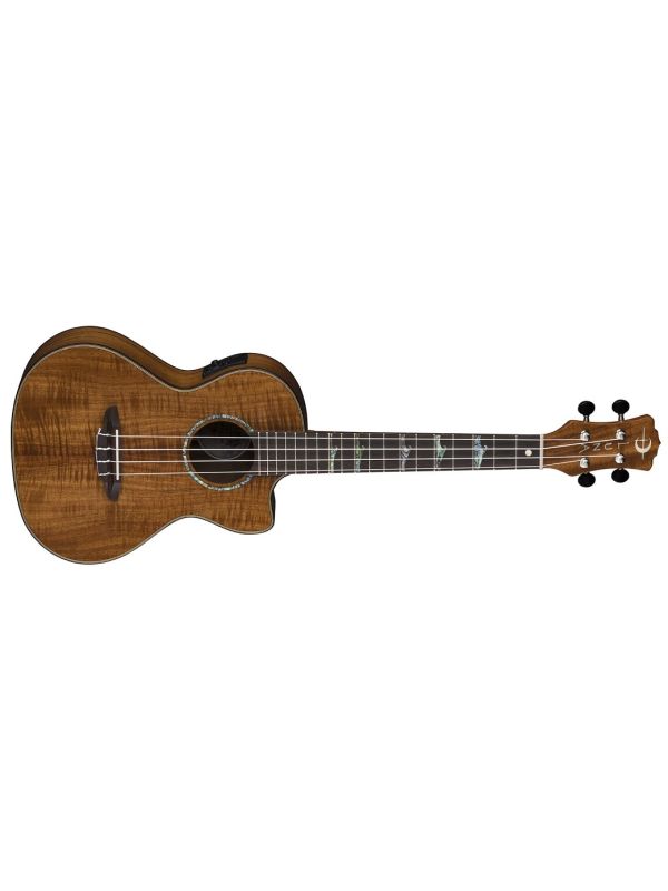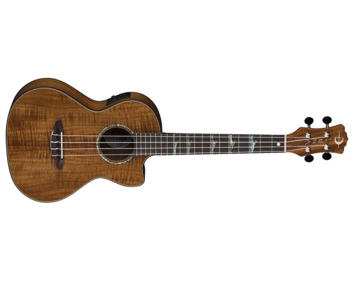 This exquisite Luna uke features a deep koa body, producing full, deep sound along with the instrument's tenor body size and onboard Luna UK-T2 preamp system with built in tuner. The cutaway offers a lasting comfort when accessing the upper-register frets. The open-style tuners keep the instrument in precise tuning and the onboard preamp provides easy amplification that can be dialed in quickly. This dazzling tenor ukulele wears a satin finish and features a multiply maple and walnut binding. Simply a beauty!