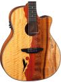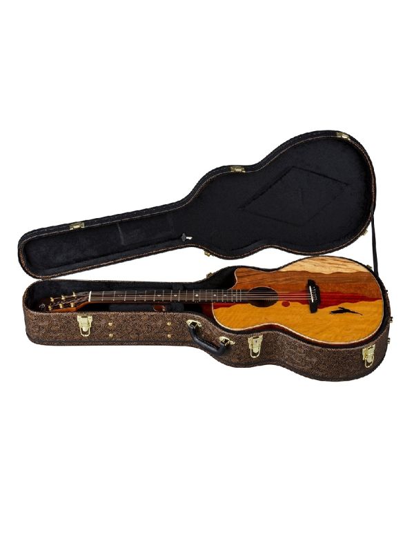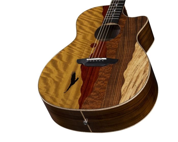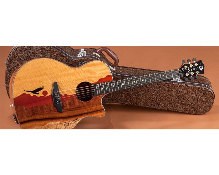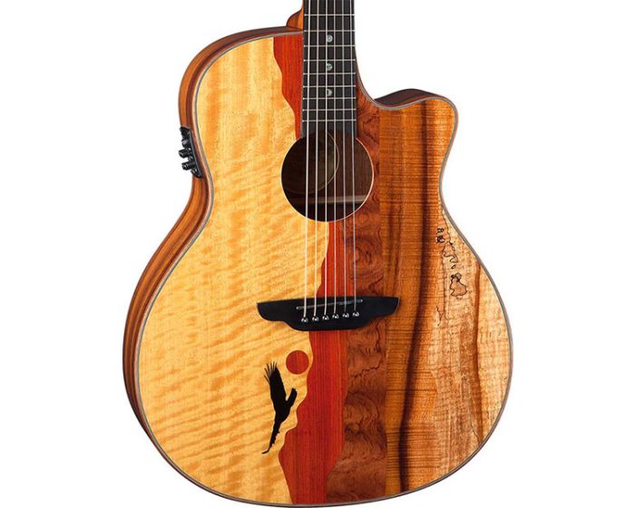 The Vista Eagle model showcases a skillfully crafted top, made from attractive tone-woods that bring its unique panoramic image to life. Handmade from a combination that includes Movingal, Paduk, Quilt Mahogany, Koa and Spalted Maple, each guitar is a completely unique work of art. Touting superb craftsmanship and rich, warm sound, Luna acoustics have long been sought after for their remarkable aesthetics. The Vista Series blurs the line between the world of fine art and the art of advanced acoustic guitar building. The Vista Eagle features a gloss finished, flamed maple bound, Grand Concert body with choice Koa back and sides for enhanced tone and projection. Precision fitted with a hand-shaped 25 scale Mahogany neck and capped with a smooth, Pearl Moon Phase inlaid Ebony fretboardthe Vista Eagles feel, playability, and stand-alone acoustic sound are nothing short of inspirational. Once plugged in, the Vista Eagle takes off in yet another sonic direction. Owing to a Fishman Presys+ (PSY-201) preamp/tuner, the Vista Eagle offers clear, strong, natural acoustic sound on stageeven when going against dense instrumentation. Whether plugged-in or not, the Vista series incredibly full tone, pristine clarity, and unique visual presence make it the ideal instrument to make your musical statement.